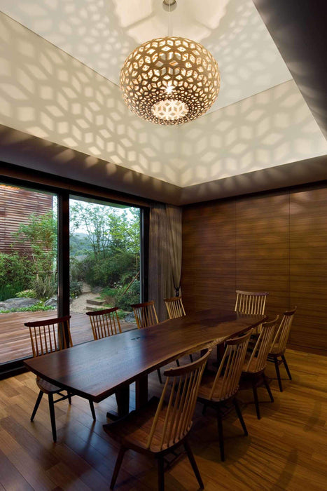 The snowflake pendant light has recently been redesigned to fit within the company’s Seed System kitset group of lights. Snowflake is assembled from a hexagonal snowflake shape which creates a repeating geometric pattern. The light was designed following a trip David made to Antarctica as a visiting artist.